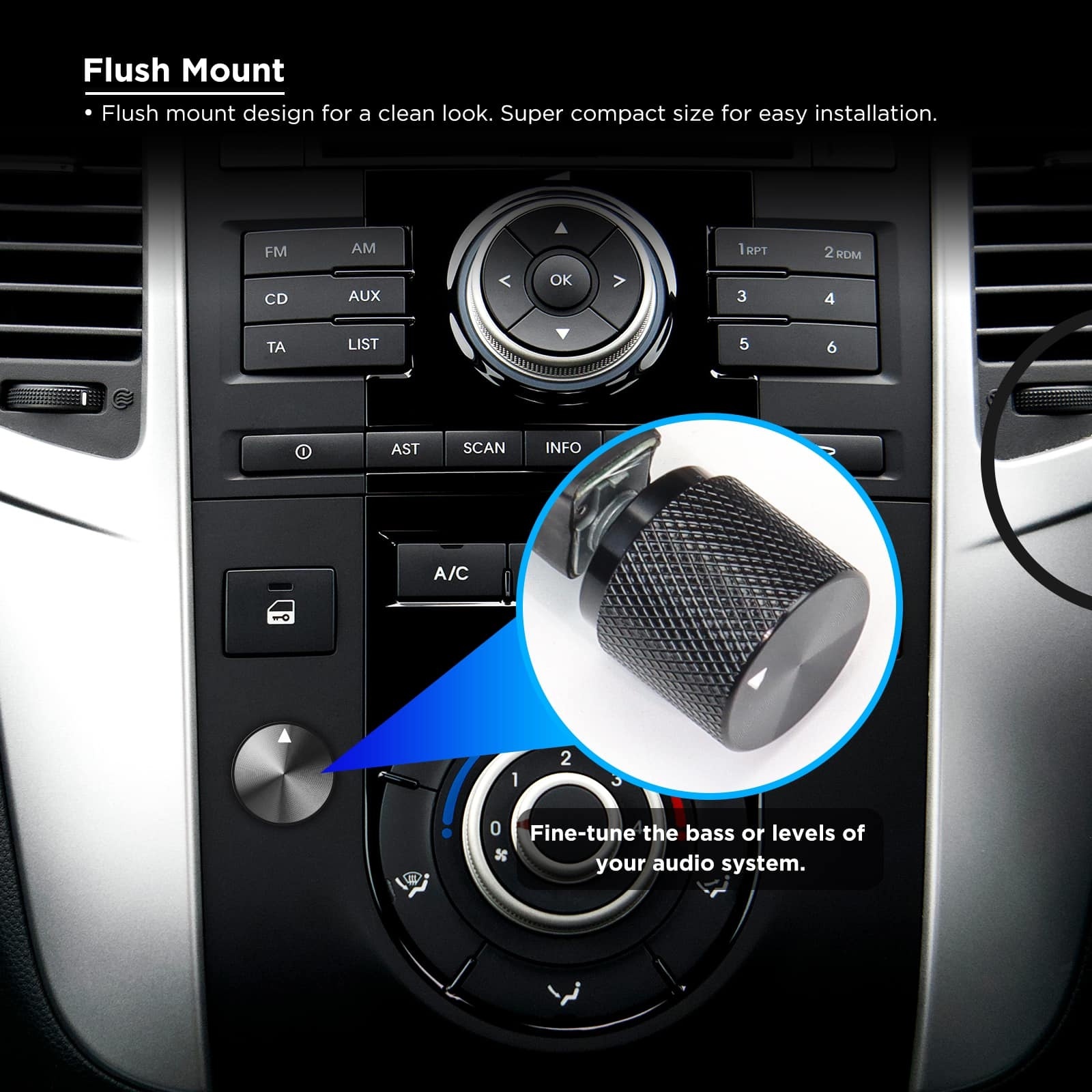 - Steuert Subwooferpegel oder Front/Rear-Balance direkt vom Armaturenbrett
