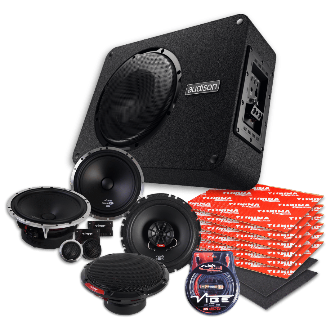 Komplettes Audio-PAKET bestehend aus Front-Lautsprechern, Heck-Lautsprechern und einem Aktiv-Subwoofer! Nutzen Sie die Chance und rüsten Sie Ihr Audiosystem mit dem leistungsstarken Komponentenset von VIBE und dem Aktiv-Subwoofer von Audison auf ein höheres Niveau auf.