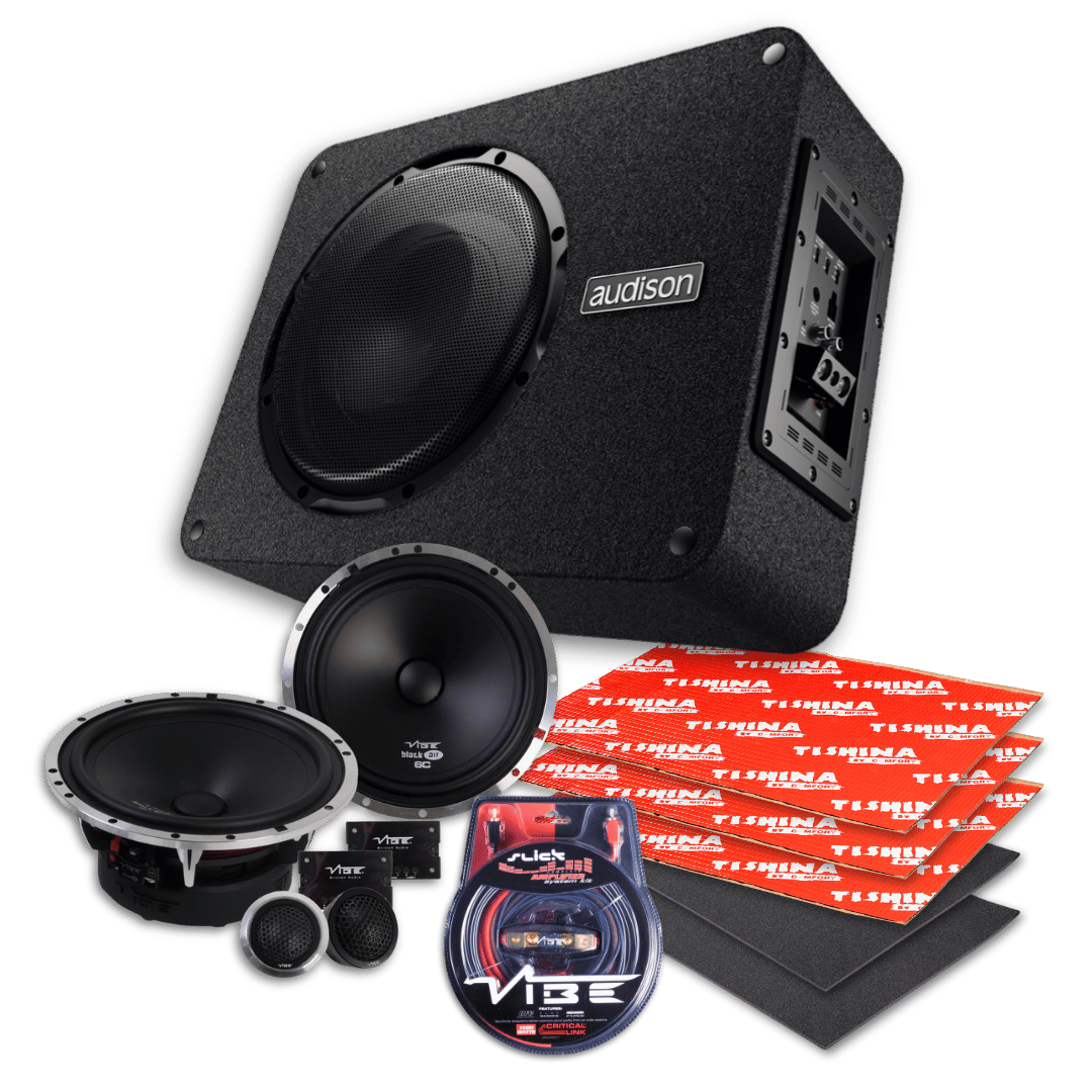Komplettes Audio-PAKET! Nutzen Sie die Chance und rüsten Sie Ihr Audiosystem mit dem leistungsstarken Komponentenset von VIBE und dem Aktiv-Subwoofer von Audison auf ein höheres Niveau auf.