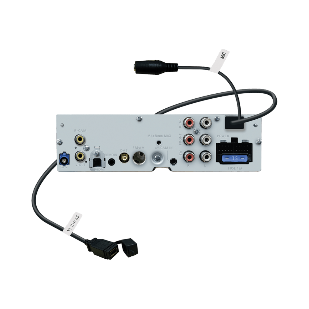 - Integrierte RCA-Anschlüsse für Kamera, Subwoofer und Zusatzbildschirme