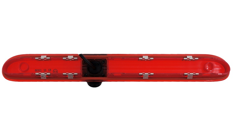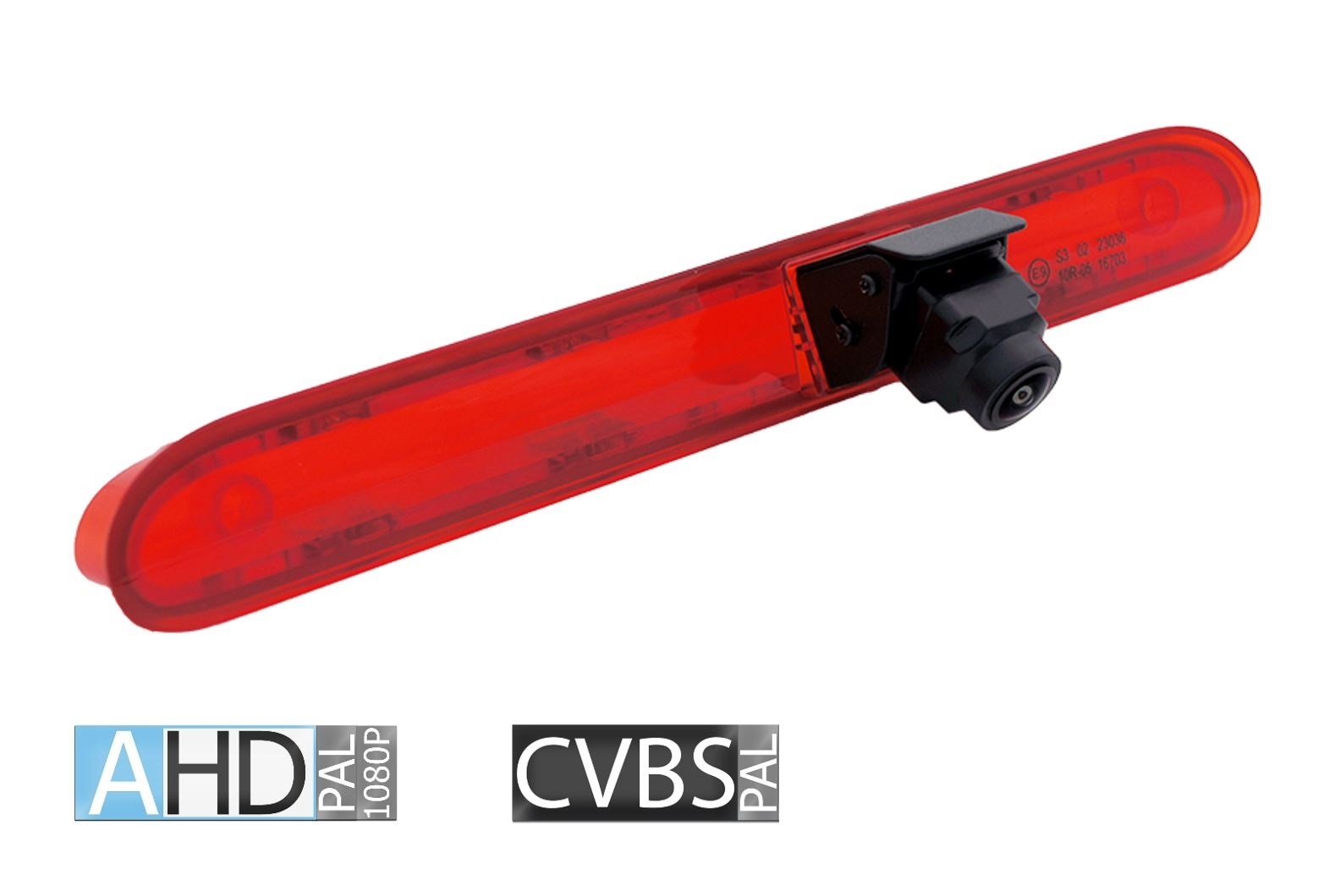Fahrzeugspezifische dritte Bremsleuchte mit hochauflösender AHD/CVBS PAL Rückfahrkamera. Einfache Montage durch Austausch des dritten Bremsleuchtenglas.
