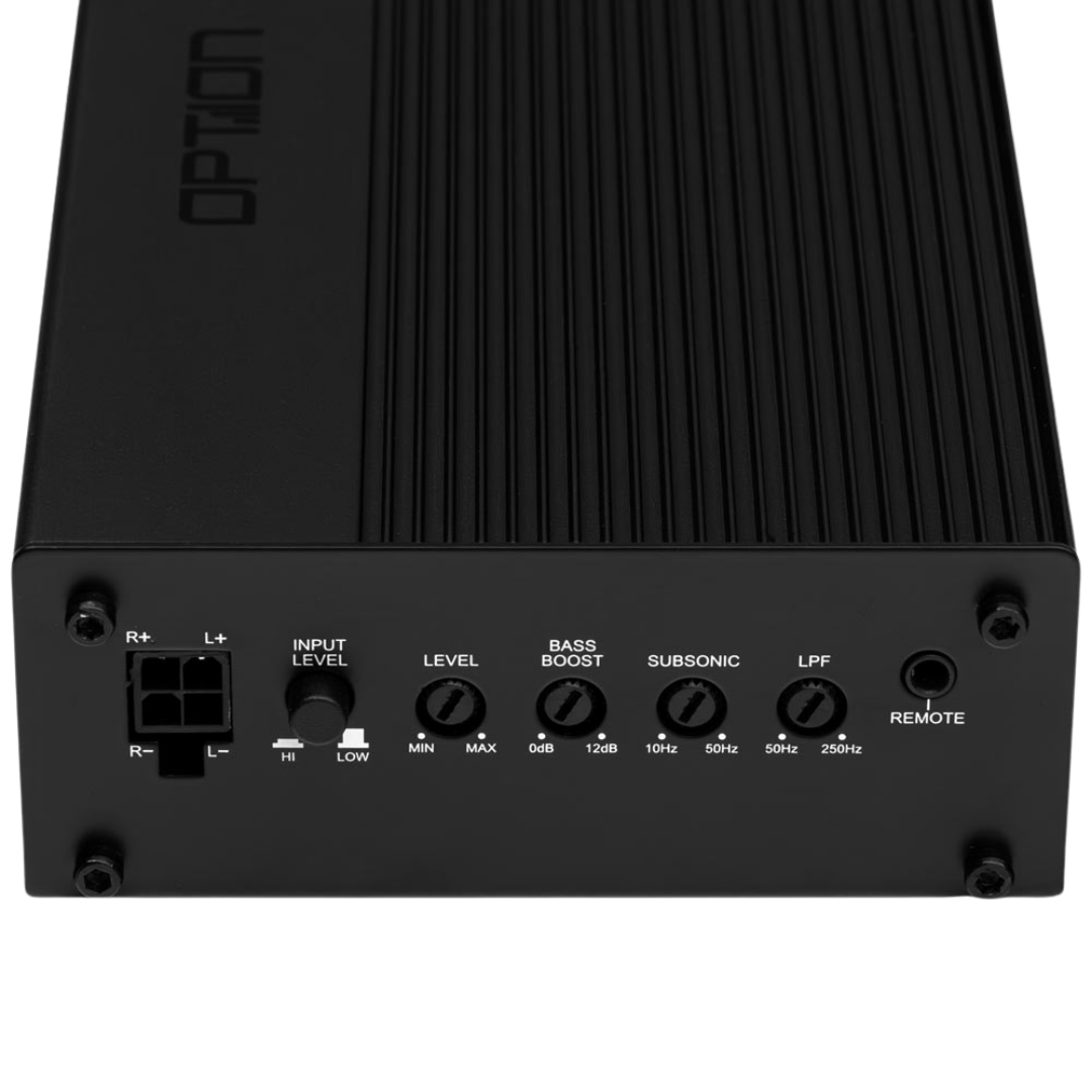 Die OPTION AIR-D1 ist ein Kraftpaket von einem Monoblock in einem kompakten Gehäuse. Speziell entwickelt für Car-Audio-Enthusiasten, die eine knackige, kontrollierte und vor allem kraftvolle Basswiedergabe fordern. Egal, ob Sie einen 4-Ohm- oder einen 2-Ohm-Subwoofer ansteuern, dieser Class-D-Verstärker liefert mit 350W bzw. 580W RMS immer genügend Headroom für ein beeindruckendes Fundament.