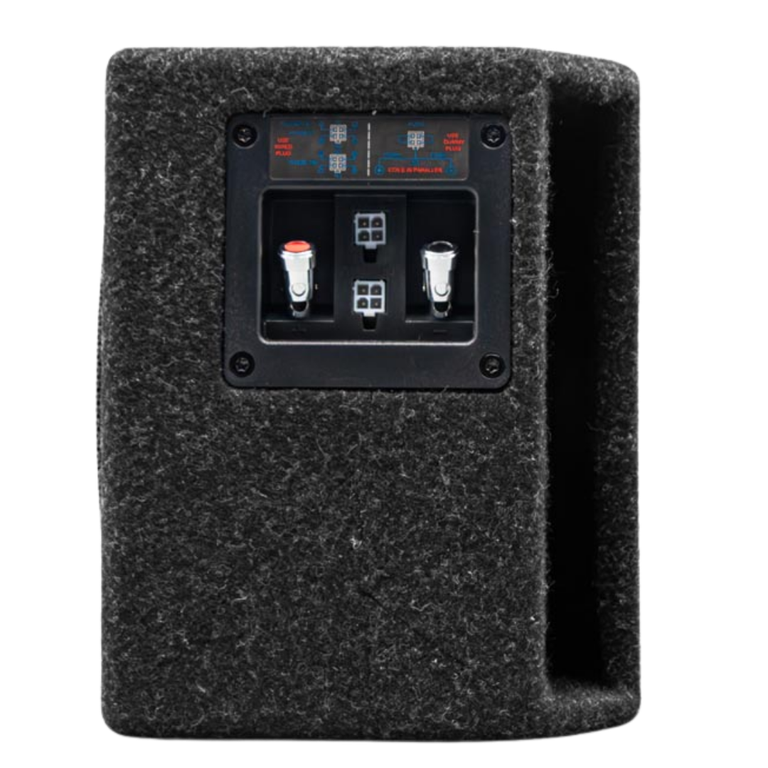 Der Anschluss des ROCK-11 ist dank der Doppelschwingspule (4 Ohm + 4 Ohm) sehr flexibel. Sie können die Spulen je nach Verstärker parallel (2 Ohm) oder in Reihe (8 Ohm) schalten.
