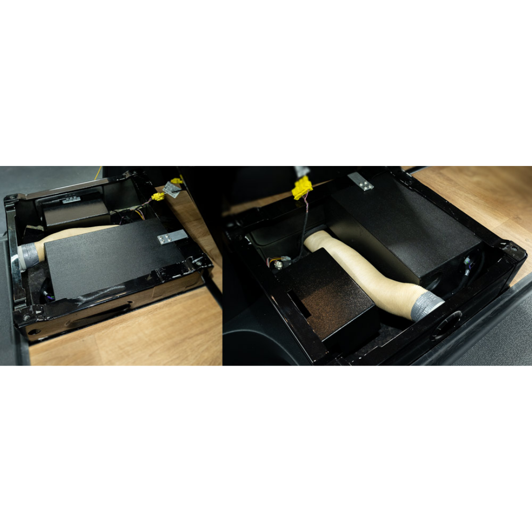 - Passt in die Beifahrersitzkonsole an der Stelle, an der normalerweise eine 100Ah-Batterie platziert werden kann.