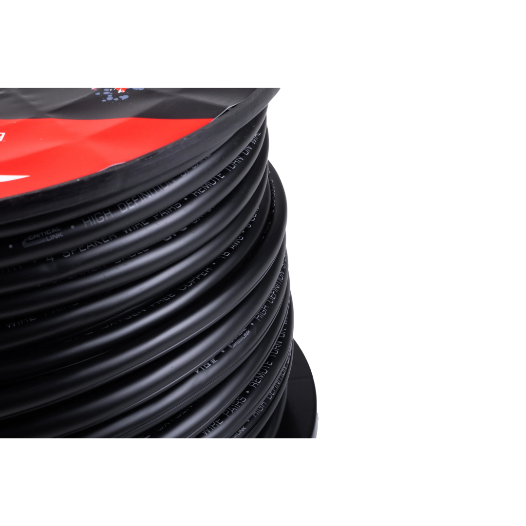 Das Vibe CLSPK9C30-V5 ist ein professionelles 9-adriges Multicore-Lautsprecherkabel, das speziell zur Vereinfachung komplexer Audio-Installationen entwickelt wurde. Dieses 18AWG-Kabel (8 Lautsprecheradern + 1 Remote-/Masseleitung) ermöglicht es Ihnen, ein komplettes 4-Kanal-Setup mit einem einzigen Kabel anzusteuern, was zu kürzeren Installationszeiten und einem saubereren Finish Ihrer Verkabelung führt.