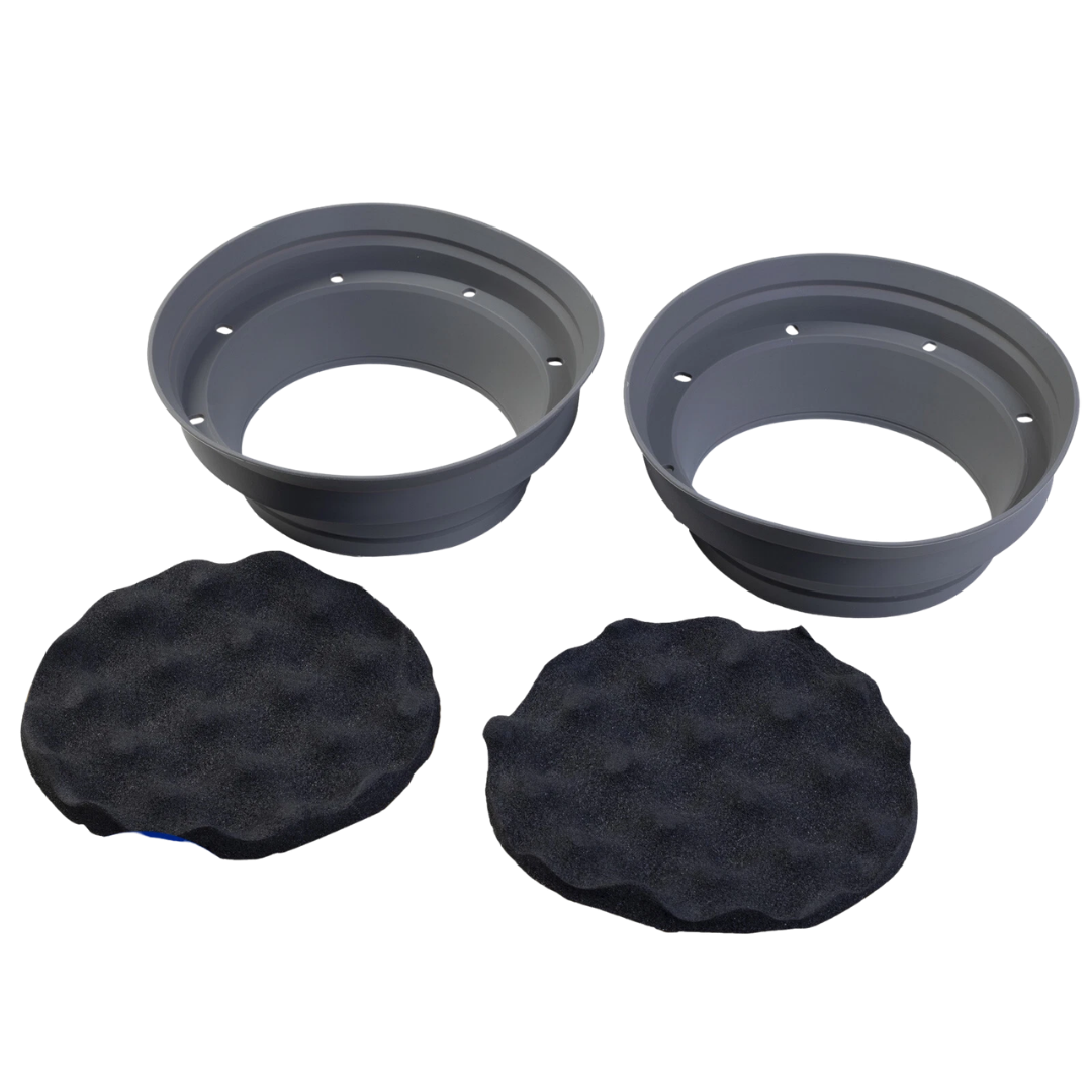 Der AVASP-V7 Anti Vibe 6.5 Inch Adjustable Speaker Baffle verbessert direkt die Leistung und den Schutz deiner 165-mm-Lautsprecher. Diese verstellbare Gummi-Baffle erzeugt einen abgeschlossenen Raum hinter dem Lautsprecher, reduziert Vibrationen und verhindert, dass der Schall von der Rückseite den Klang auf der Vorderseite beeinträchtigt. Dank der integrierten Waveguide und Water Guard genießt du einen strafferen, klareren Klang sowie zusätzlichen Schutz vor Feuchtigkeit.